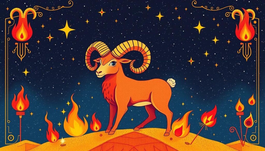 The Aries fire element is key in shaping those born under this sign. They are known for their passion and electric enthusiasm. This fire ignites their creativity and drives them forward.